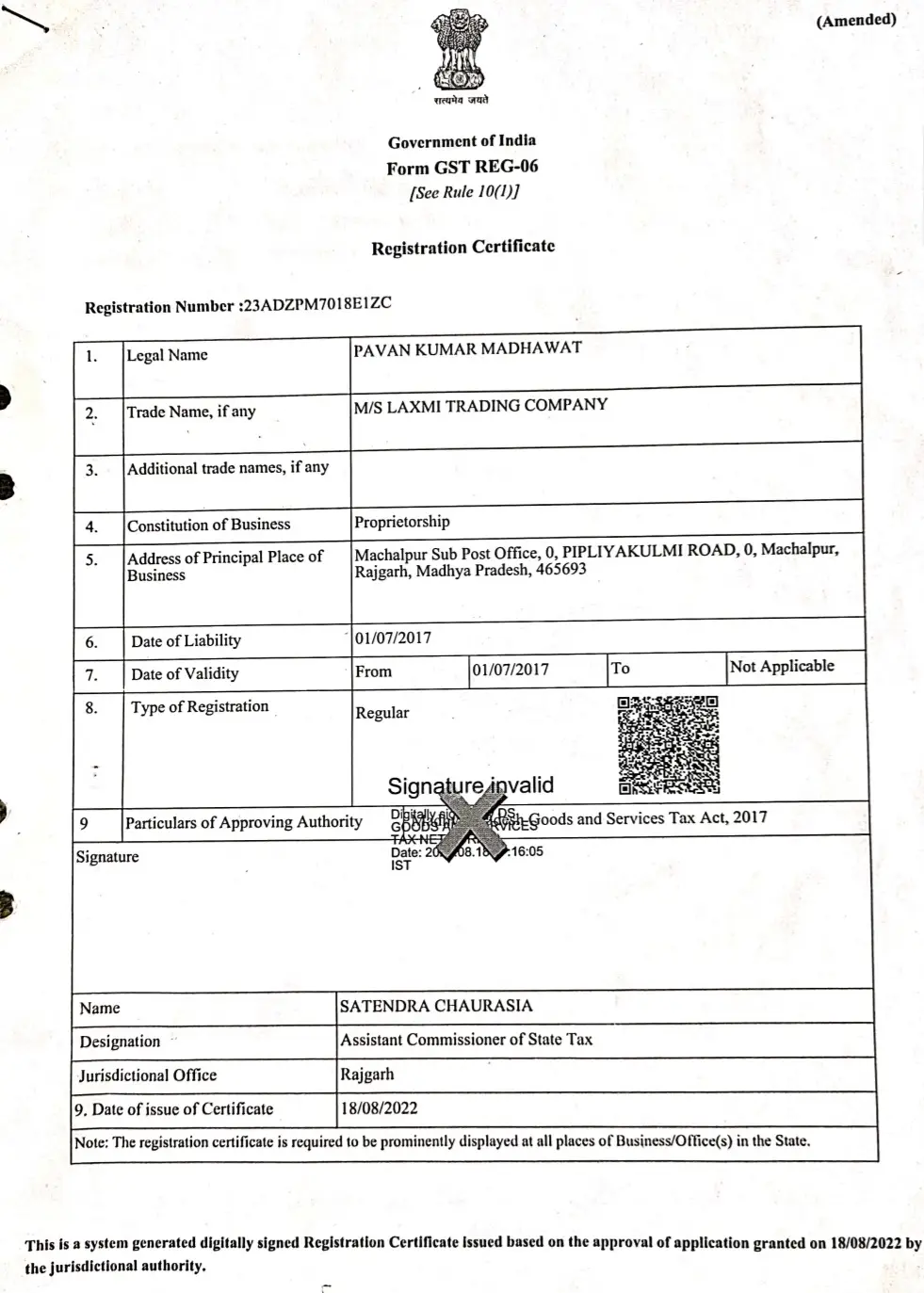 We are fully registered under India’s Goods and Services Tax framework, ensuring tax compliance and transparency in every transaction.